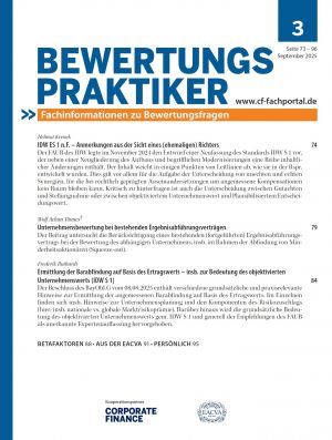 Am 27.09.2025 ist der BewertungsPraktiker 3/2025 erschienen, welcher der Zeitschrift CORPORATE FINANCE (9-10/2025) beiliegt, u.a. mit den folgenden Themen:
